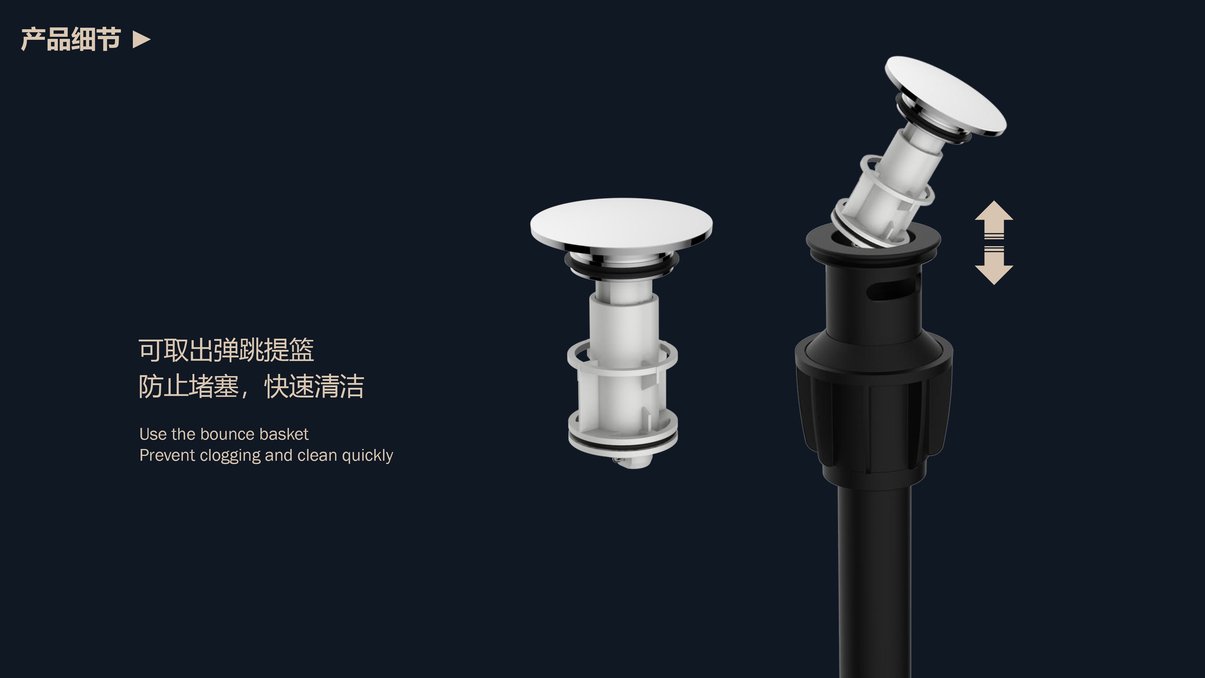 彈跳式排桿;可取出彈跳提籃,防止堵塞,快速清潔