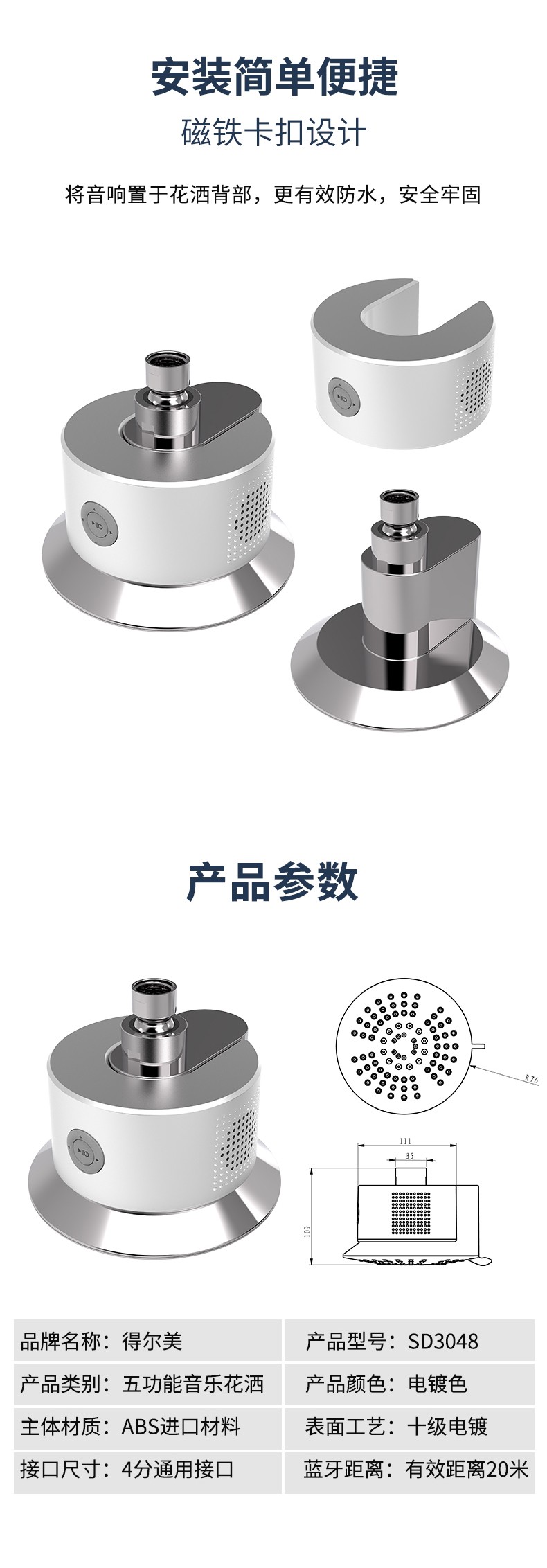 SD3048 5功能音樂(lè)蓮蓬頭